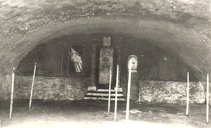 של פנים בית כנסת שצוייר על גבי הריסות של טירה ב-
